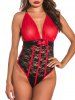 Mesh and Lace Bowknot Piping Ring Strappy Teddy