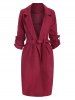 Side Slit Roll Sleeve Belted Trench Coat