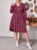 Plus Size Plaid Half Zip Drawstring Rolled Tab Sleeve Dress
