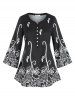 Plus Size Flower Print Placket Wide Sleeve Tunic Tee