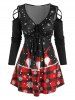 Crisscross Cold Shoulder Cinched Christmas Printed T Shirt