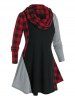 Plus Size Plaid Contrast Curved Hem Tee with A Scarf