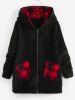 Plus Size Plaid Hooded Pocket Fluffy Coat