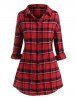 Plus Size Plaid Drop Shoulder Button Front Tunic Shirt