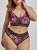 Plus Size Floral Print Mesh Lingerie Bra Set
