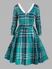 Plus Size Plaid Faux Fur Panel High Low Dress