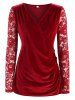 Plus Size Lace Sleeve Velvet Ruched Surplice Top