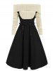 Off The Shoulder Lace Up Cable Knit Mixed Media Dress