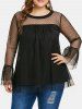 Plus Size Sheer Flare Sleeve Mesh Blouse