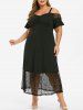 Plus Size Ruched Lace Panel Open Shoulder Dress