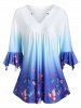 Butterfly Print V Neck Rings T Shirt