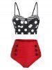 Polka Dot Striped Mock Button High Waisted Tankini Swimwear