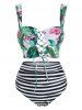Tropical Flowers Stripe Print Lace up Bikini Set