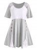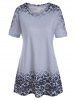 Plus Size Flower Lace Button Embellished T shirt