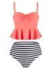 High Waisted Striped Flounce Peplum Tankini