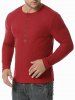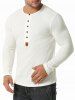 Jacquard Button Round Collar Long Sleeve T shirt