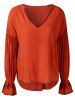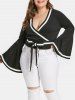 Plus Size Stripe Trim Flare Sleeve Wrap Blouse