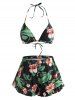 Floral Leaf Ruffled Halter Boyshorts Bikini Swimwear