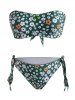 Ditsy Print Lettuce Trim Tie Side Strapless Bikini Swimwear