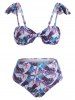 Ruffle Leaf Print Knot Pleated Detail Bikini Swimwear