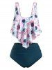 Floral Leaves Print High Waisted Ruched Tankini Swimwear