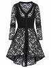 Button Up Flower Lace High Low Shirt and Crop Top