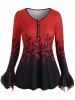 Loop Button Flower Print Ruffle Cuff Top