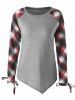 Tie Cuff Raglan Sleeve Plaid Top