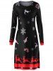 Christmas Print Long Sleeve Flare Dress