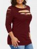 Plus Size Three Quarter Sleeve Ripped T shirt