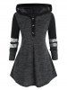 Plus Size Buttons Hooded Sequins Stripe T Shirt