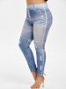 Plus Size 3D Ripped Print Faux Denim Leggings