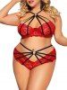 Plus Size Lace Caged Open Back Underwire Bra Set