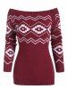 Button Side Off Shoulder Zig Zag Geometric Sweater