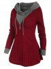 Colorblock Zip Embellished Hooded Sweater