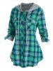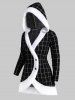 Hooded Plaid Grid Faux Fur Panel Plus Size Jacket
