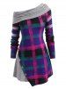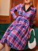 Plaid Mock Buttons Sparkle Panel Plus Size Top
