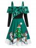 Cold Shoulder Ruffled Christmas Printed Dress