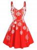 Christmas Snowflake Print Sleeveless Lace up Dress