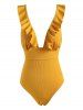 Ruffle Lace up Textured Ribbed One piece Swimsuit
