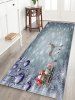 Cartoon Santa Claus and Elk Printed Christmas Floor Rug