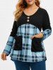 Plus Size Asymmetric Shawl Collar Plaid T Shirt