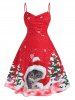 Plus Size Christmas Tree Santa Print Button Dress