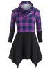 Plus Size Asymmetric Shawl Collar Plaid T Shirt