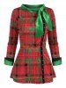 Christmas Pussy Bow Plaid Rivet Slit Cuff Top