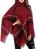 Turtleneck Plaid Fringed Poncho