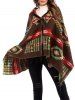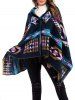 Hooded Geo Horn Button Fringed Poncho