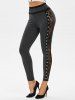 Lace Panel Grommet Colorblock Pants
