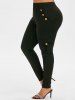 Plus Size Mock Button Side Pockets Skinny Leggings
