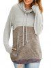 Cowl Neck Colorblock Knit Slip Pockets Sweatshirt